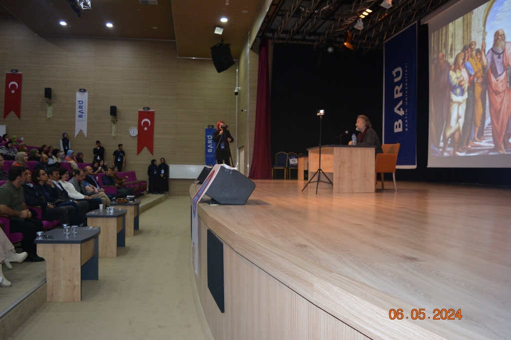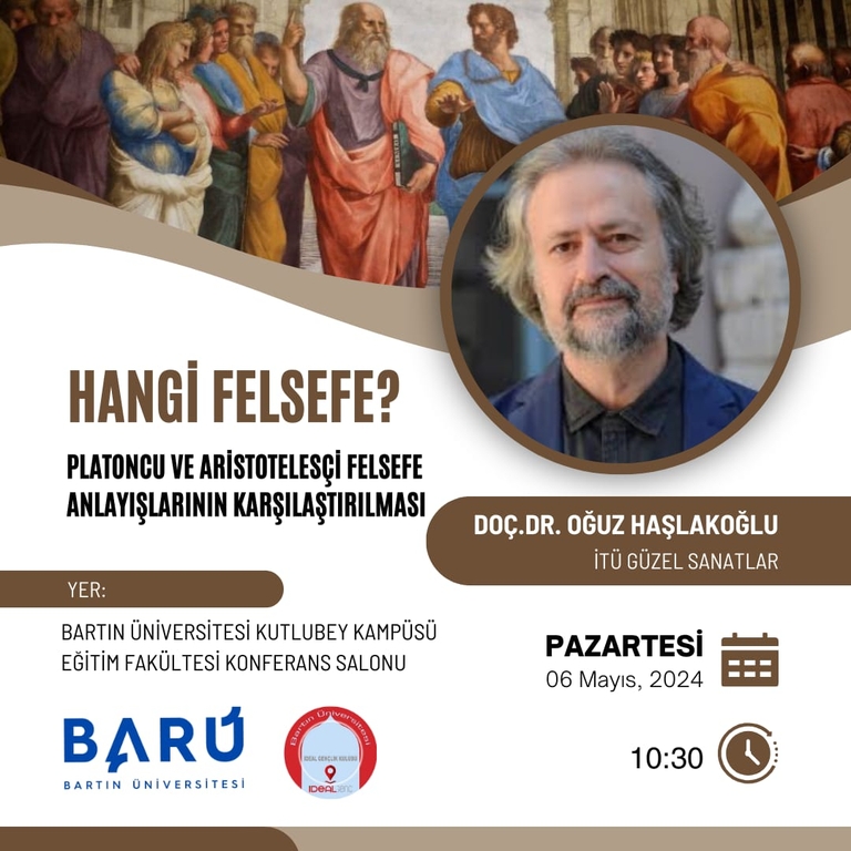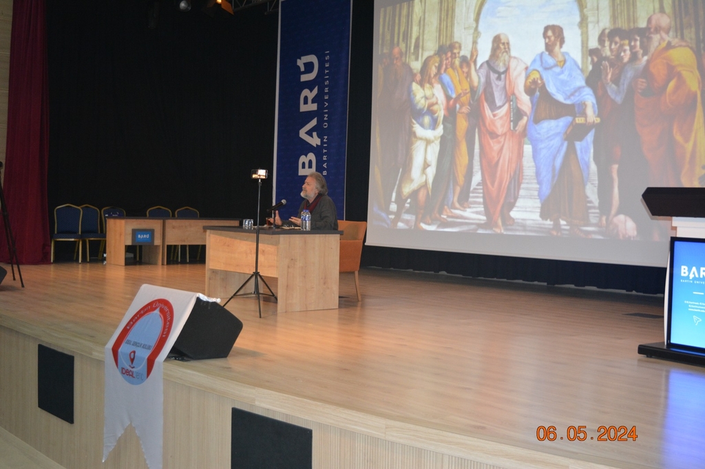 İslami İlimler Fakültesi Felsefe ve Din Bilimleri Bölümü tarafından 06.05.2024 tarihinde saat 10:30 Eğitim Fakültesi Konferans Salonunda İTÜ Güzel Sanatlar Bölümü Başkanı Doç. Dr. Oğuz HAŞLAKOĞLU sunuculuğunda “HANGİ FELSEFE?: Platoncu ve Aristotelesçi Felsefe Anlayışlarının Karşılaştırılması” konulu konferans düzenlendi. Yoğun ilgiyle takip edilen konferansta Haşlakoğlu, Felsefe Tarihinin en çetin problemi olan iki büyük düşünürün metafizik sistemlerini anlatmış, özellikle Platon düşüncesinin günümüzde yanlış anlaşıldığına dikkat çekti.